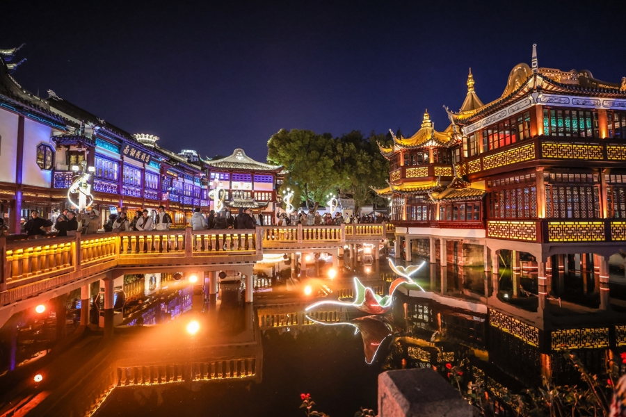 “随着入境游客增多,我们做过测算,今年豫园的外籍客流比往年有20%至25%的增长,而且大量游客喜欢来赏夜景。”大豫园一期执行总裁徐飞介绍,于是团队萌生了做365天灯光秀的初衷,并且把灯光秀与其他活动相结合。